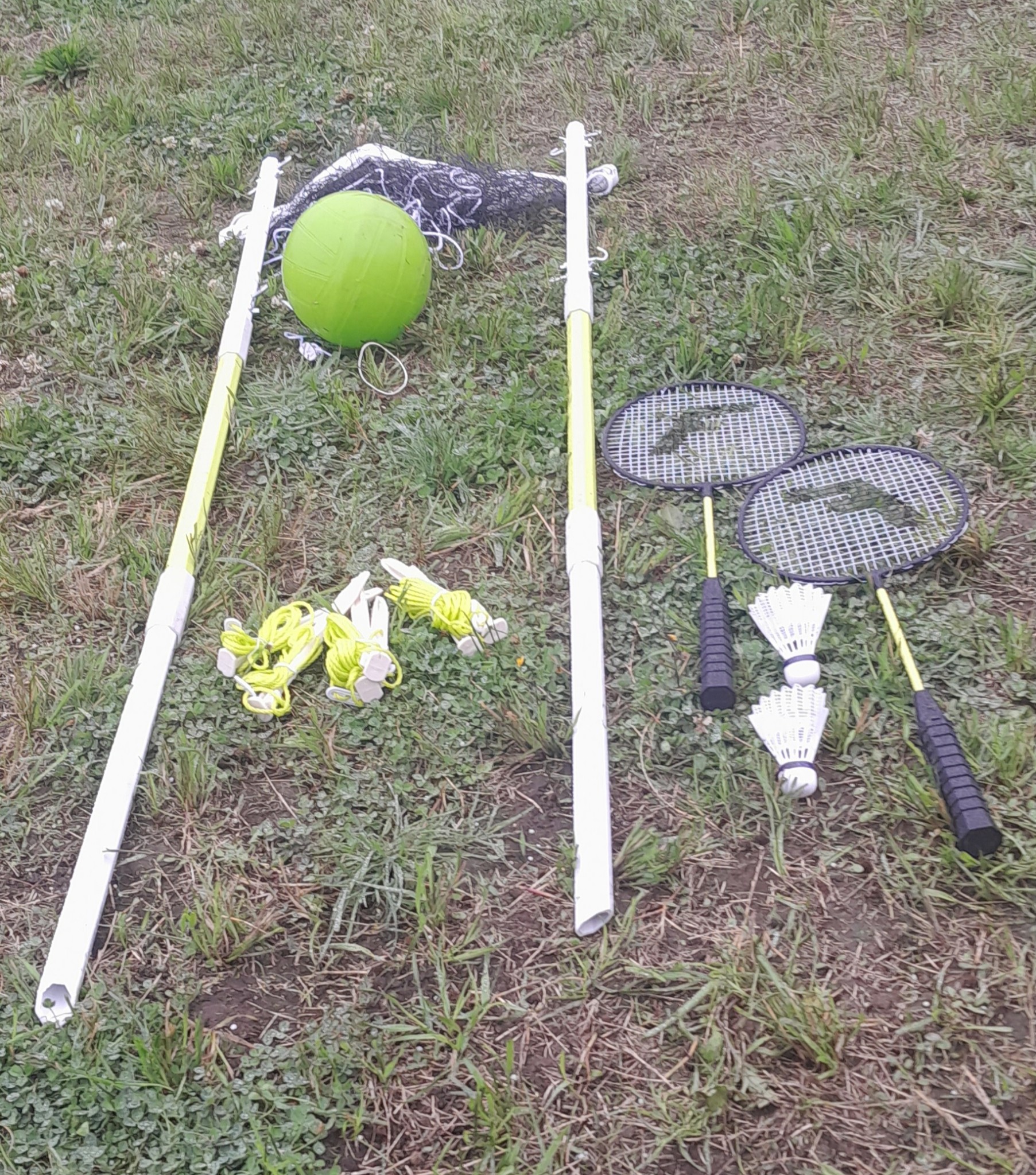 Badminton/volleyball net setup.