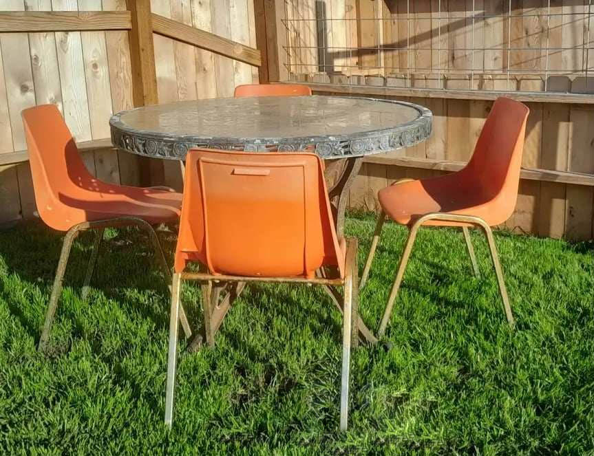 Round table and chairs in the lawn area.